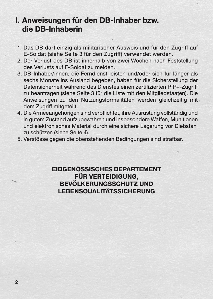 Das schweizerische Militärsystem ist nach dem Prinzip einer Milizarmee organisiert, was dazu führt, dass die meisten Soldaten keine Berufssoldaten sind. Jeder muss ein Dienstbüchlein besitzen, das seinen Werdegang vom ersten Tag der Rekrutierung bis zu den zahlreichen Spezialisierungen und Beförderungen, die er im Laufe der Zeit erwirbt, festhält. Das Dienstbüchlein beschreibt auch, wie die Streitkräfte zu einem bestimmten Zeitpunkt funktionieren, mit detaillierten Anweisungen zu den militärischen Aufgaben und der Verwendung der verschiedenen Elemente der militärischen Ausrüstung.